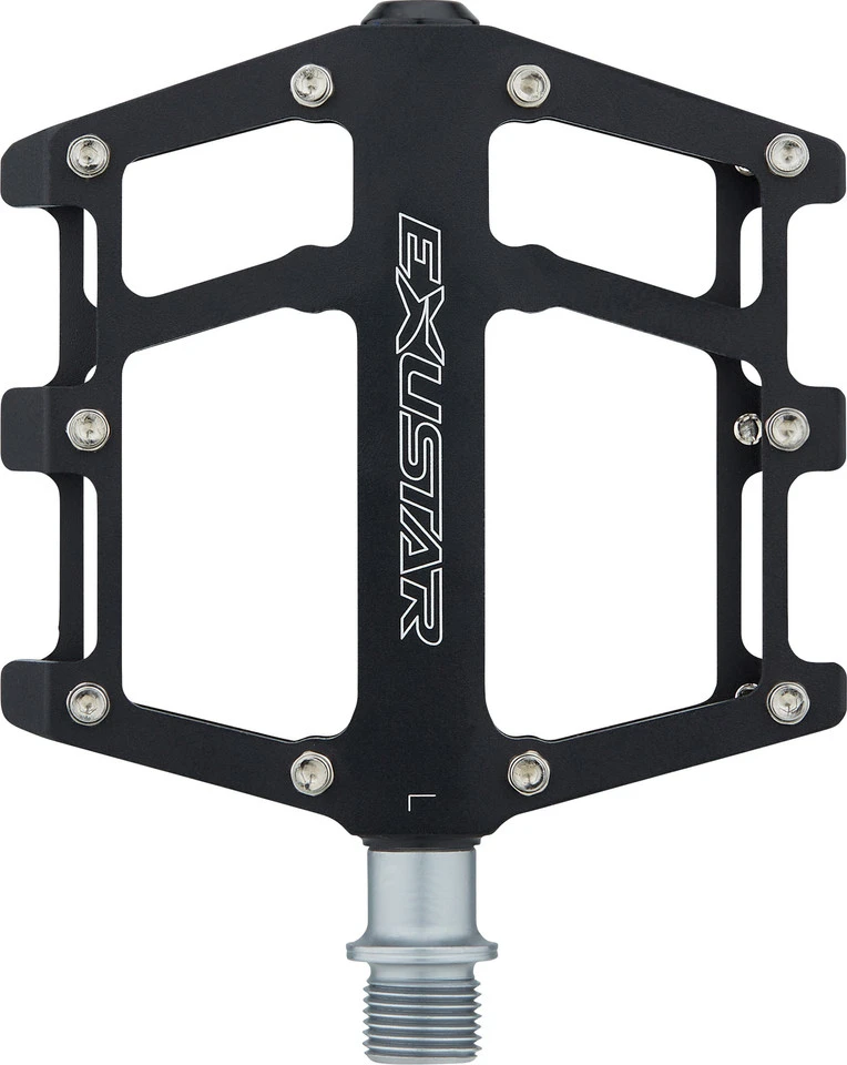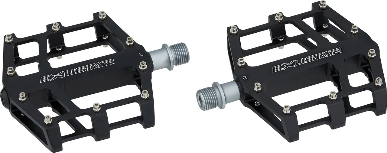 Das Exustar E-PB525 stellt mit seiner großen Standfläche sowie 10 Pedalpins pro Seite ein griffiges Plattformpedal dar und garantiert eine sichere Haftung auch in kritischen Situationen.
