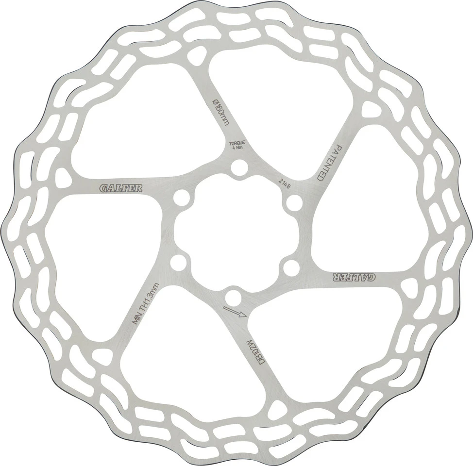 Technische Daten:Montage:6-LochDurchmesser:140 mm, 160 mmBauart:1-teiligMaterial Disc:EdelstahlFeatures:1,8 mm dicklasergeschnittenstarke, dosierbare Bremskraftleicht, leise und vibrationsarmbesonders hitzeresistent durch hohen Kohlenstoffgehalt an der Bremsflächegleichbleibende Leistung bei trockenen und nassen Bedingungenmit Korrosionsschutzhergestellt in SpanienHerstellernummern:140 mm:DB101W160 mm:DB102WLieferumfang:1 x Bremsscheibe GALFER Fixed Disc Wave 1,8 mm Road 6-Loch6 x Schraube