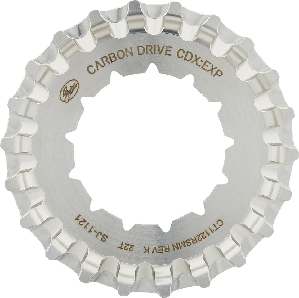 Spezifikationen:Einsatzbereich:Touring & Trekking, Cross CountryBefestigung:Rohloff SplineZähne:19 Z, 20 Z, 22 ZTechnische Daten:Breite der Zähne:12 mmZahnteilung:11 mmDicke der Riemenscheibe an der Aufnahme:2,0 mmVersatz:1,3 mm (Montagefläche), 2,3 mm (Mittellinie)Material:EdelstahlKompatibilität:Rohloff Speedhub 500/14Rohloff Speedhub 500/14 XLfür die Montage ist der Rohloff Splined Carrier L zwingend erforderlichVerwendung eines Snubber zwingend vorgeschrieben (verhindert ein Überspringen des Riemens)Features:CDX:EXP-Niveau: High-End-Variante für hohe Belastungen und beste Performance plus 25 % zusätzliche Abnutzungsoberflächegeeignet für Schlamm, Sand, Schnee und Eis sowie sämtliche Straßenmittlere Führungsnut (CenterTrack)für wartungsarme Fahrten über extreme Entfernungen auf nahezu jedem TerrainTechnologie:Gates Carbon Drive System