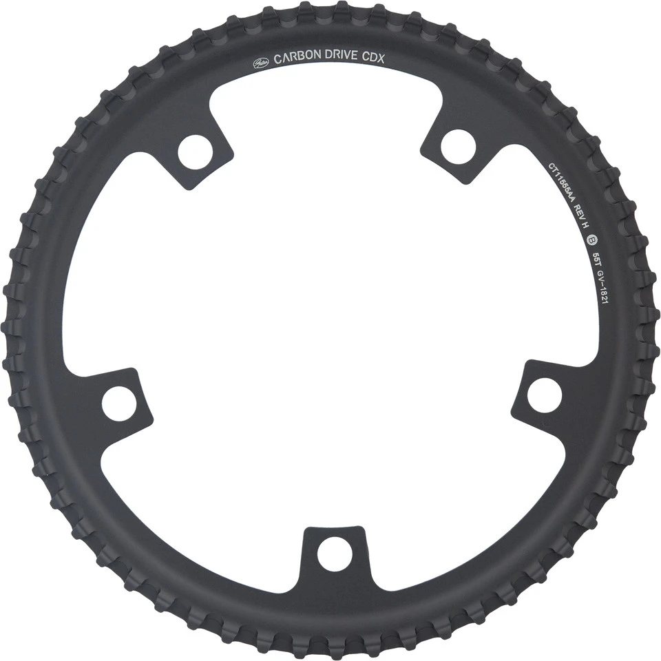 Spezifikationen:Einsatzbereich:All Mountain, Touring & Trekking, Cross CountryZähne:46 Z, 48 Z, 50 Z, 55 Z, 60 Z, 70 ZBefestigung:130 mm Lochkreis, 5-ArmTechnische Daten:Breite der Zähne:11 mmZahnteilung:11 mmDicke der Riemenscheibe an der Aufnahme:3,1 mmVersatz:3,1 mm (Montagefläche), 1,55 mm (Mittellinie)Innendurchmesser:114,5 mmBreite der Arme:18 mmMaterial:Aluminium (6061)Features:CDX-Niveau: High-End-Variante für hohe Belastungen und beste Performancegeeignet für Schlamm, Sand, Schnee und Eis sowie sämtliche Straßenmittlere Führungsnut (CenterTrack)hohe Laufleistungschwarz eloxiertTechnologie:Gates Carbon Drive System