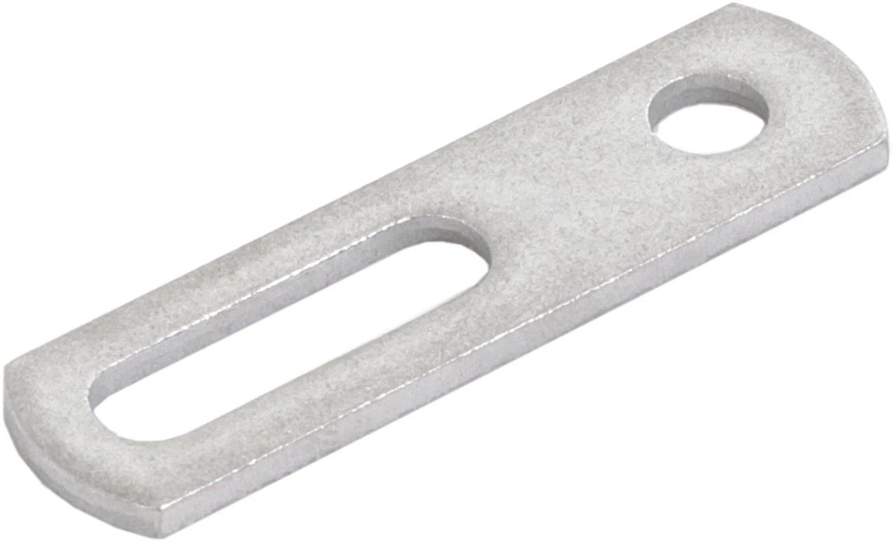 Die Hebie Befestigungslasche Edelstahl ist ein Teil der Universal-Befestigung für Hinterbaustrebe bei einflügeligen Kettenschützern.