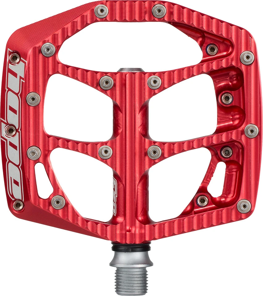 Die Hope F20 Plattformpedale werden aus einem Stück Aluminium gefräst und bieten aufgrund der eingearbeiteten Rillen besseren Kontakt zum Pedal und den optimalen Grip. Das Pedal ist mit einer Dicke von 14 mm zwar recht flach, jedoch durch die Stahl-Achse sehr stabil.