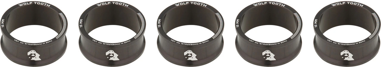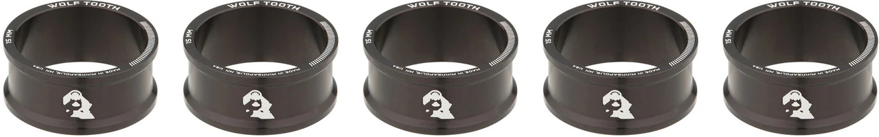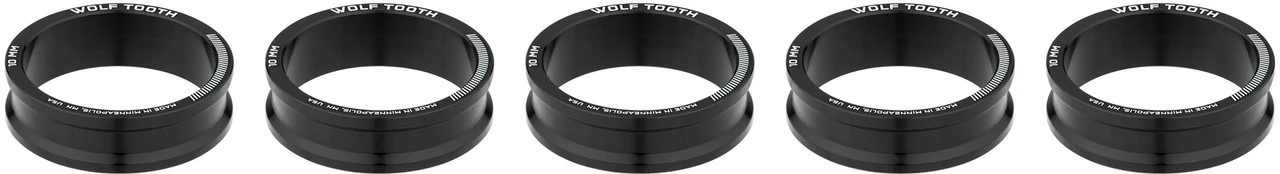 Die Wolf Tooth Components Precision Headset Steuersatz Spacer sind in Größen von 3 bis 15 mm erhältlich, sodass Du problemlos das Richtige für Dein Cockpit findest.