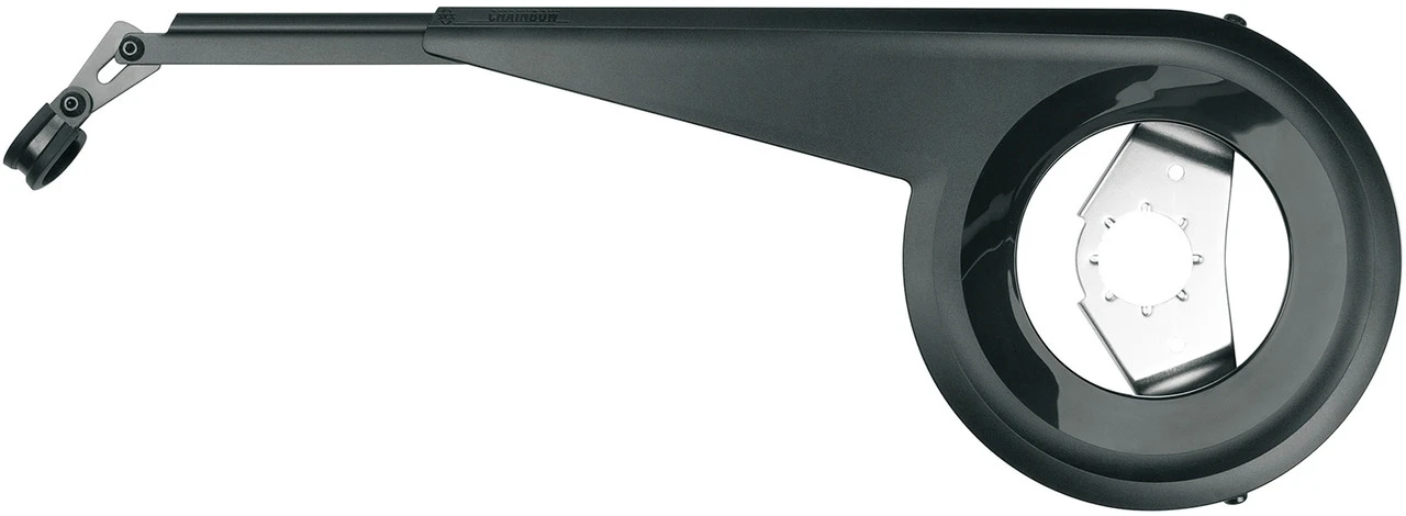 Einen perfekten Schutz für Deine Kette bietet der Chainbow Kettenschutz aus schlagfestem, schwarzem Kunststoff und Aluminium. Dank der Teleskopfunktion und des mehrfach einstellbaren Haltewinkels lässt er sich variabel anpassen.