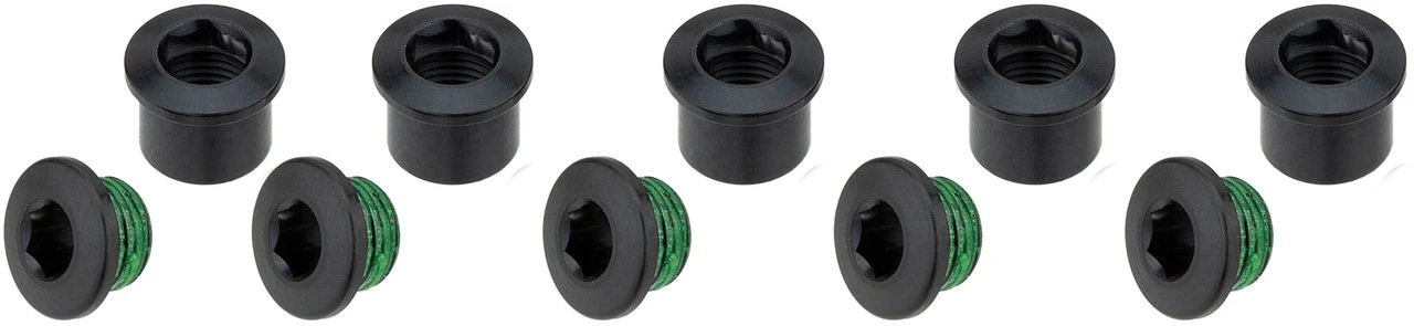 Kompatibilität:für alle 2-fach Road Kurbelgarnituren geeignetHerstellernummer:black:11.6915.009.000silver:11.6915.008.000Lieferumfang:5 x Kettenblattschraube SRAM5 x Hülse/Mutter SRAM
