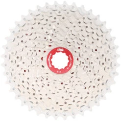 Mit der SunRace CSMX3 Kassette schaltest Du dank Fluid Drive Plus™ Technologie jederzeit sauber und zuverlässig. Sie zeichnet sich durch eine große Bandbreite aus (11-40, 11-42, 11-46 10-fach) und durch das charakteristische Loch-Design, welches Gewicht einsparen hilft. Die Ritzel 1 bis 9 sind aus Stahl, das größte Ritzel besteht aus Aluminium. Dazwischen sitzen zwei Spider, die genauso rot eloxiert sind wie der Abschlussring der CSMX3.
